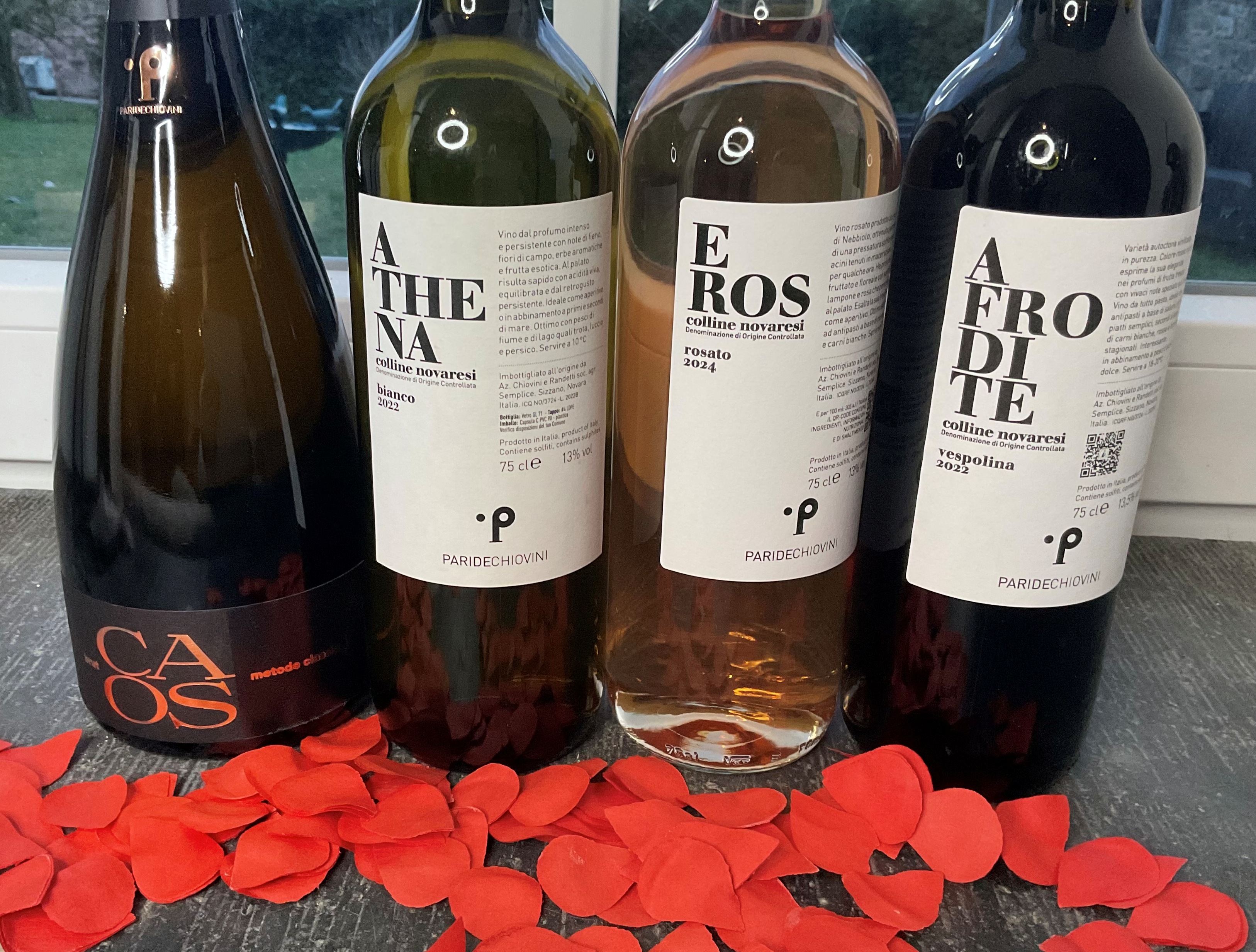 Qui d'autre que Paride Chiovini, avec Athéna, Eros et Afrodite, ainsi que le starter Caos , pourrait faire naître l'amour dans le verre ? Trois des quatre vins font référence à la mythologie grecque et à la passion ardente avec laquelle ils se sont battus.